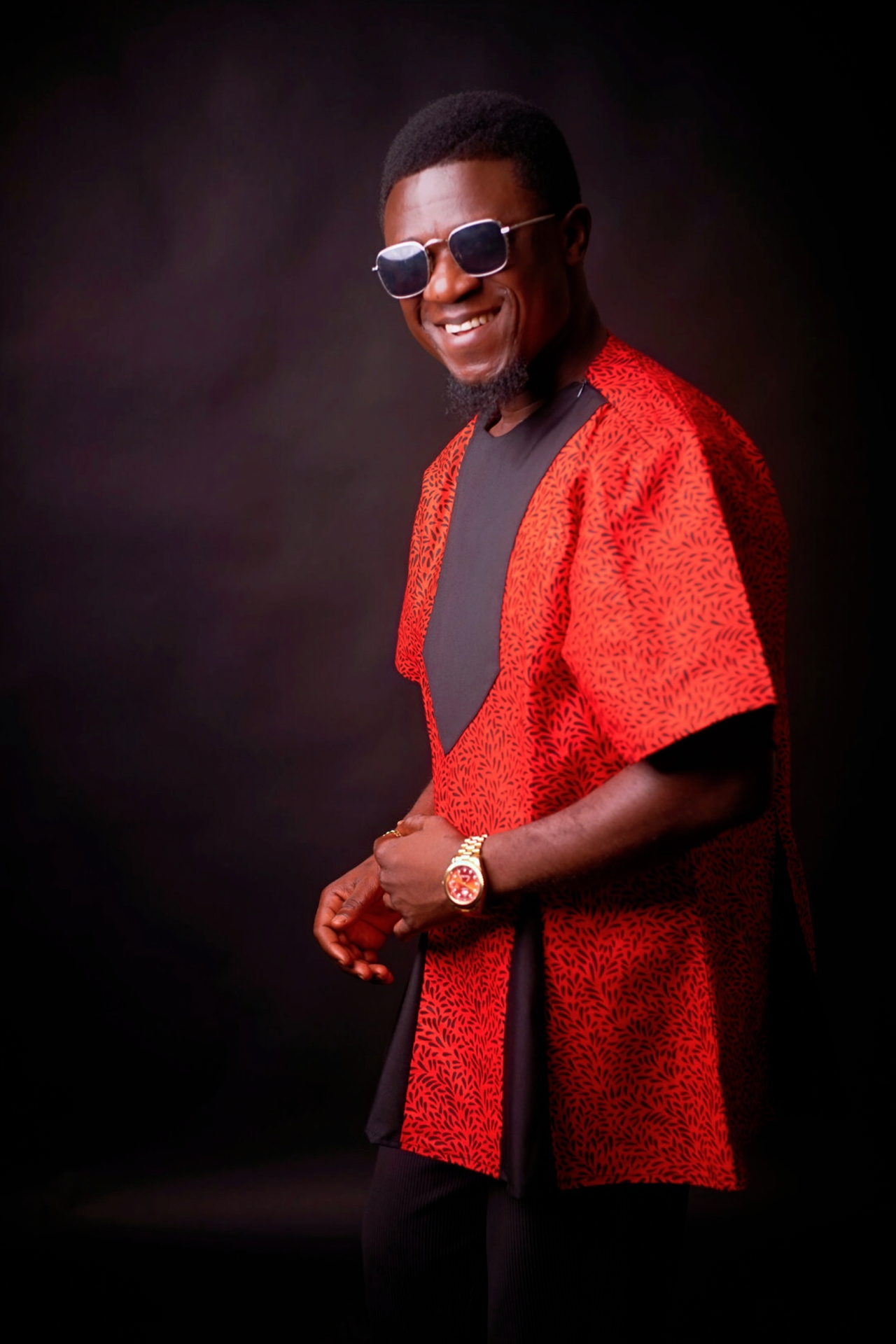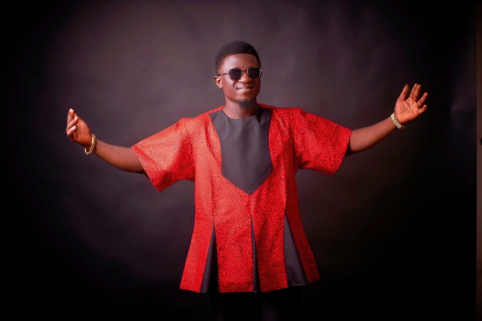 Bold red elegance🔥A vibrant African red fabric infused with black tones, Designed with a daring front Emblishment that draws the eye. The oversized dramatic sleeves brings volume and movement while the flared open cuts adds freedom and grace. Styled with subtle caution, it balances structure with flow , making this piece both powerful and refined💼