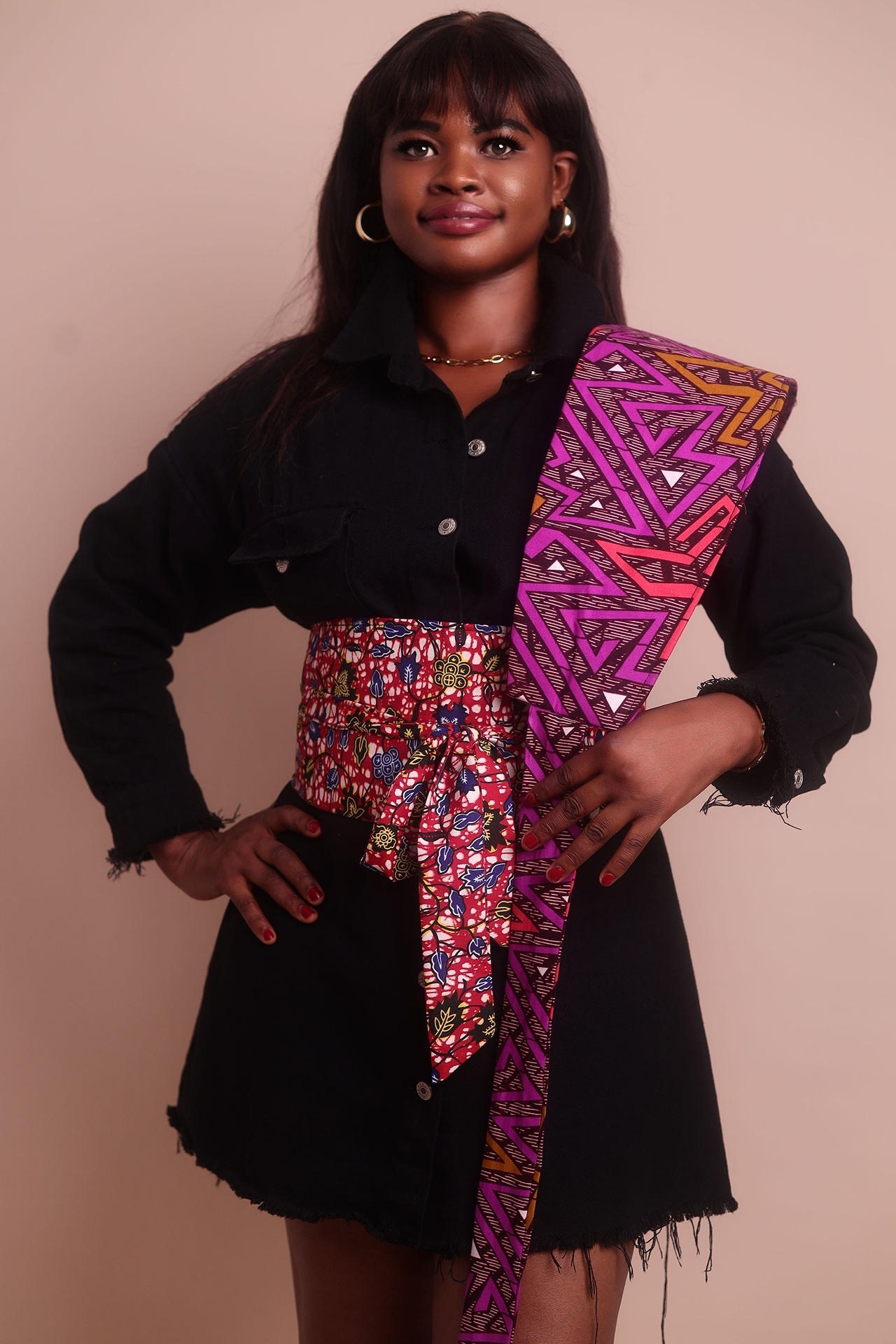 This African Print corset belt is a bold, structured waist accessory, designed to define the sihoutte and elevate any outfit. Crafted from premium African print fabric, the belt features a wild corset-style build that cinches for a flattering hour glass figure. The vibrant print adds cultural richness and visual impact, making it a perfect styling piece for  both casual and formal look.